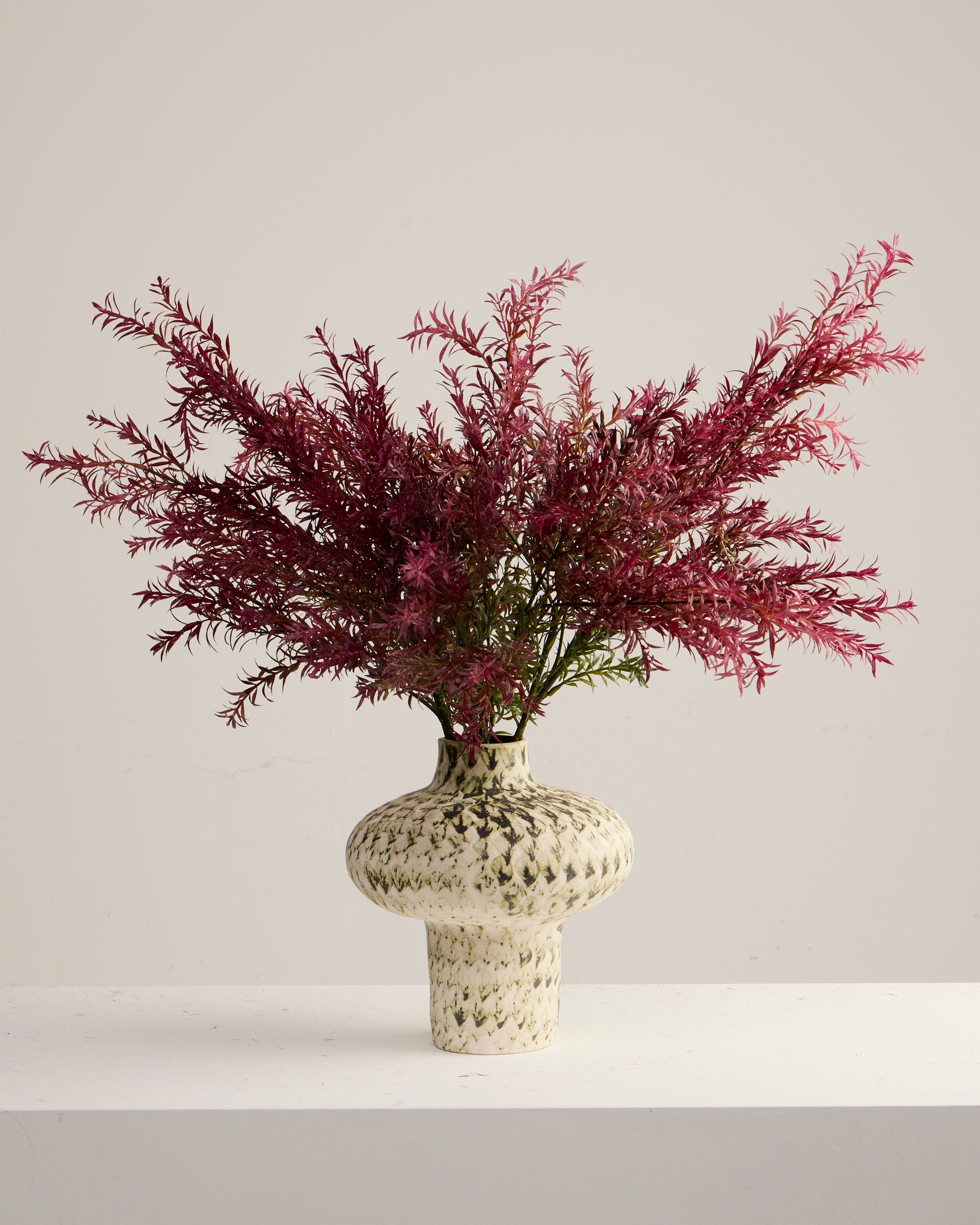 Bold, fiery, and full of texture, our Deep Red Foliage Spray makes a striking addition to any floral display. With vivid red tones and lifelike detailing, this faux stem brings instant warmth and drama to your styling.