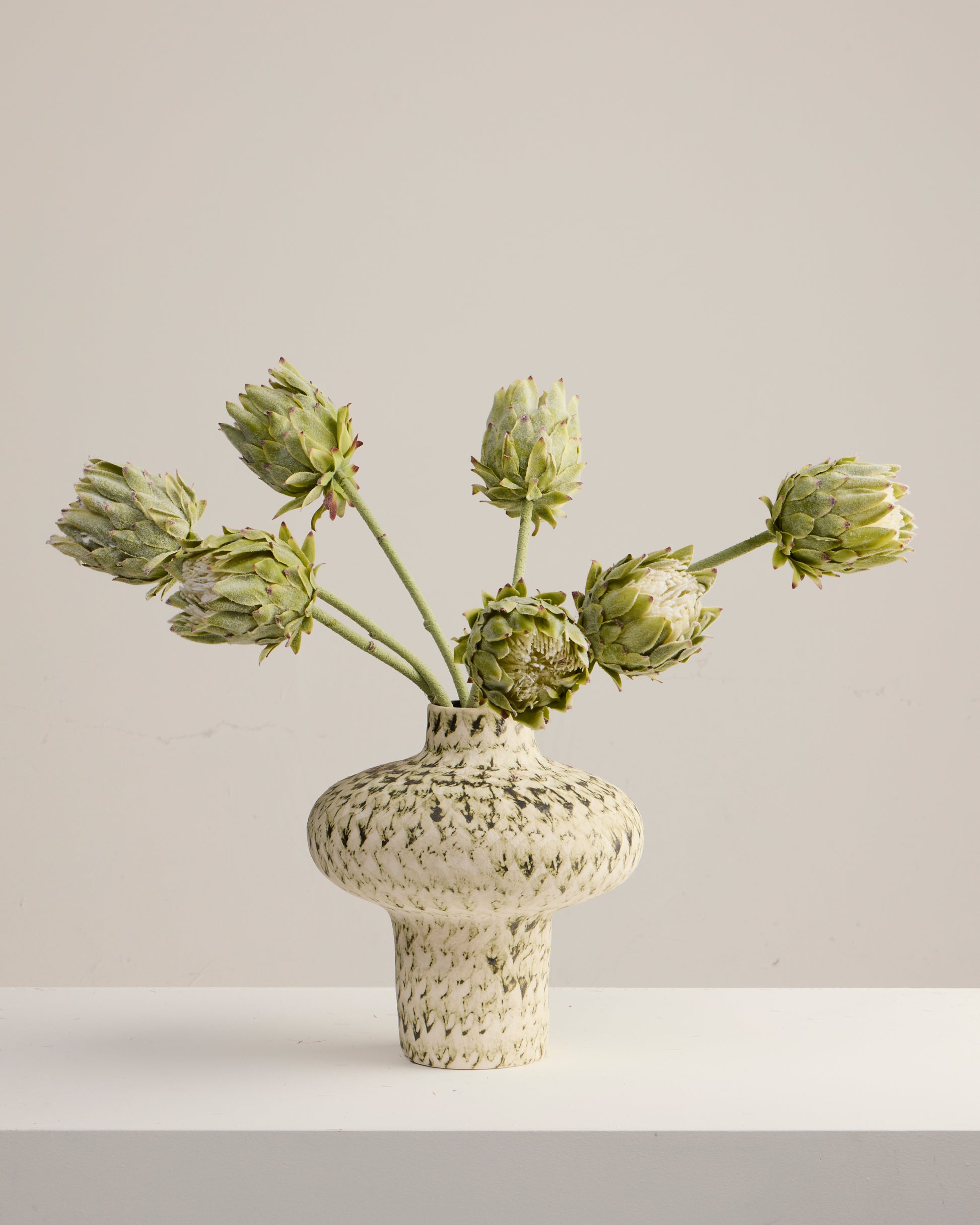 Bring a touch of exotic elegance into your home with our Green Protea Stem. Known for their sculptural shape and striking texture, proteas make a bold design statement and this faux version captures every detail, right down to the velvety petals.