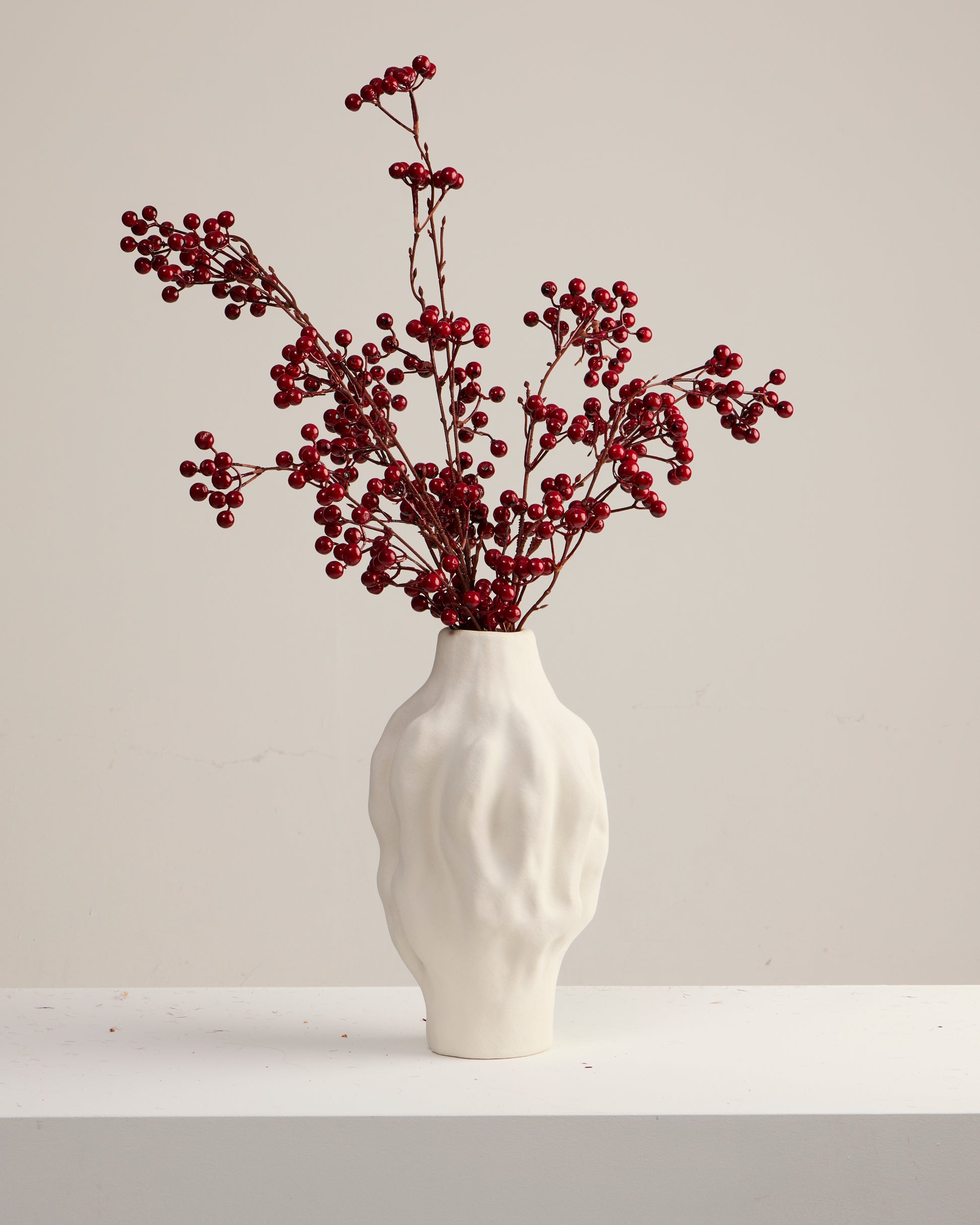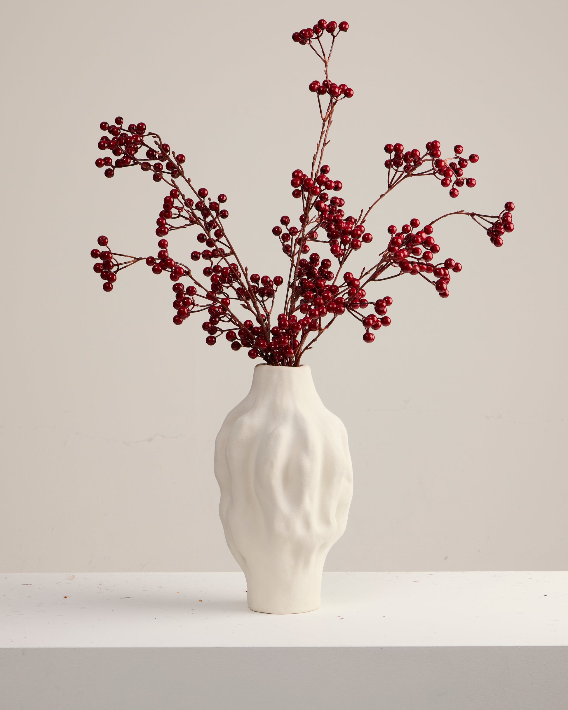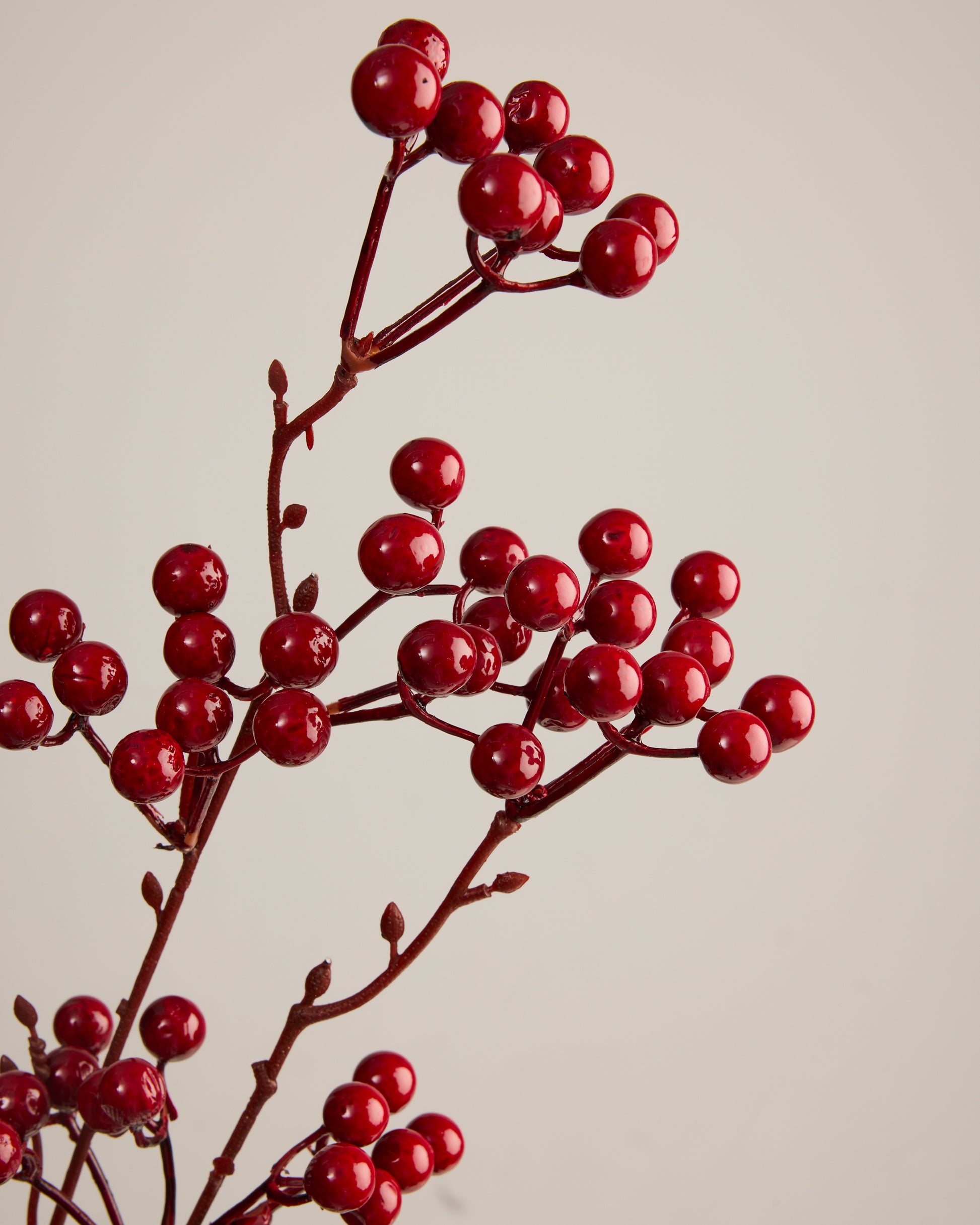 The Red Berry Spray is a must-have for autumn and winter styling. Featuring clusters of glossy red berries, they look good enough to eat (but please don't!) Perfect for everything from festive tablescapes to luxe wreaths, this stem is the ultimate styling essential.
