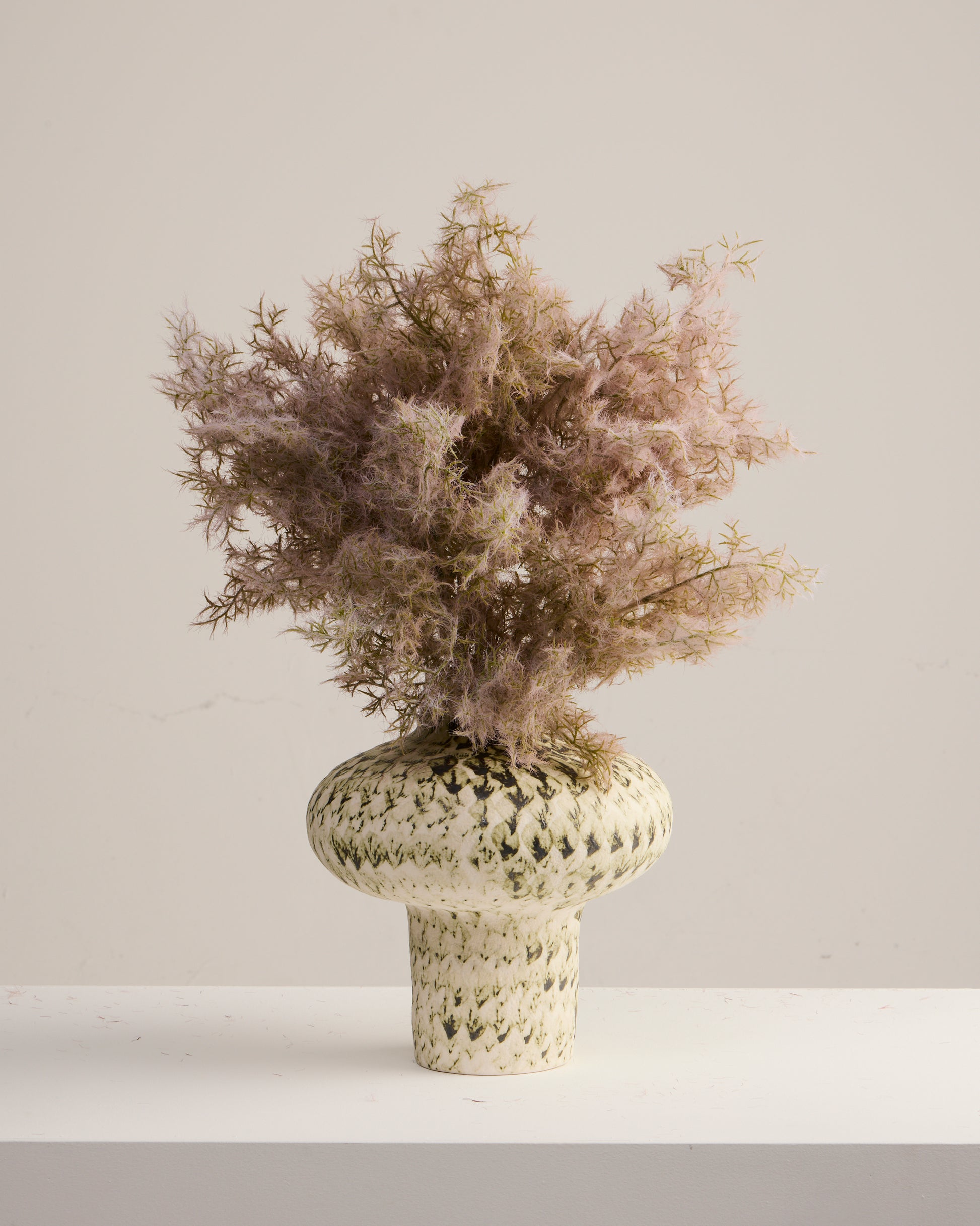 Soft, neutral, and effortlessly chic, our Oatmeal Fluffy Foliage Stem brings pampas-inspired texture with a contemporary twist. Its muted beige tones and feathery finish make it the perfect addition to both boho styling and modern minimalist décor. Crafted from premium faux materials, it has the airy movement of natural grasses without the mess or shedding. Ideal for wedding bouquets, farmhouse-inspired centerpieces, or statement vases, this versatile stem adds warmth, texture, and elegance to any arrangement.